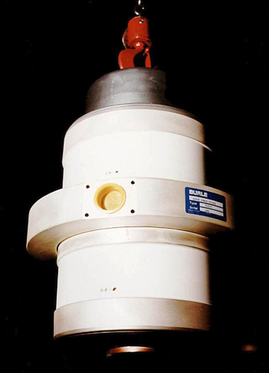 | Burle/RCA 7835 Super-Power Triode NEW | John Lyles | Another big, double-ended tube, hanging from a crane. This one is a triode, used to produce 3 to 4 MW of peak power at 200 MHz for linear proton accelerators. |