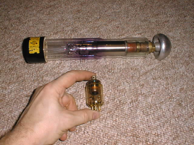 | Large thyratron | D. Bromilo | HUGE microwave tube from a radar station, dwarfing a miniature receiving type. |