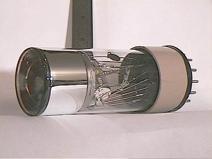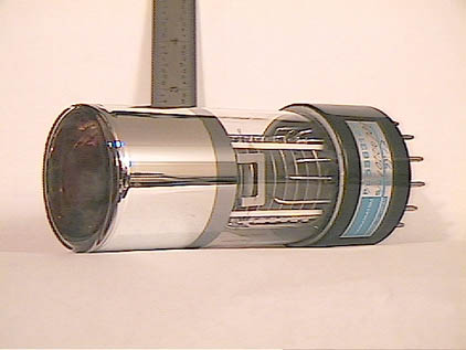 | RCA 5820A 3" Image Orthicon NEW | Peter J. Stonard | "In the late 1940s the Image Orthicon was developed. It applied the scanning electron gun on axis with the optical image, and used a photo multiplier at the socket end to amplify the latent (electron) image formed on a glass disc in the neck area." |