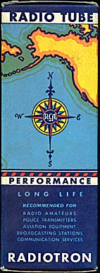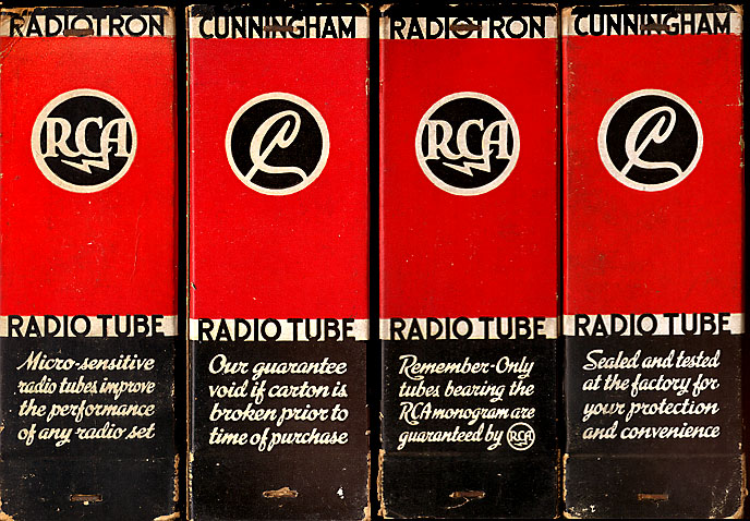 | RCA Cunningham | Personal collection | Box is for a 1B5 shoulder tube, alternating RCA and Cunningham faces. This style box had no flaps, using stapled flanges to hold Mister Valve in. |