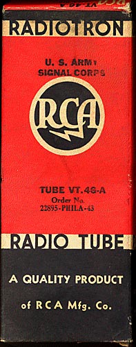 | RCA Radiotron #1 | Sergio Coelho | Classic Red and Black box - held a VT-46A, apparently for US Army Signal Corps |
